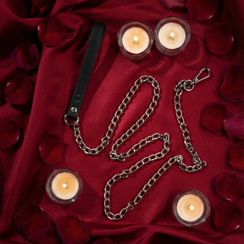 skórzana smycz BDSM z metalowym łańcuchem