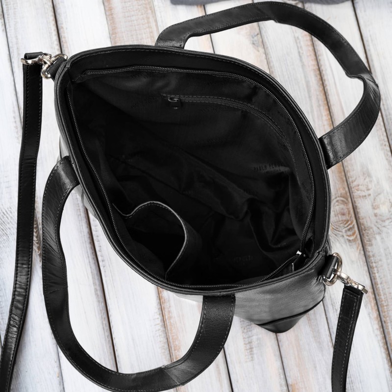 Класическата черна пазарска чанта е основен модел, който всяка жена трябва да има в гардероба си. Неподвластна на времето, удобна за опаковане и подходяща за всякакви стилове - не е ли това характеристиката на перфектната дамска чанта? Новата черна дамска чанта на Paolo Peruzzi ще зарадва всички дами, които търсят голяма чанта от кожа, която да подхожда на всеки тоалет. Хвърлете черната чанта през рамо и се възхитете на простотата на кройките в ретро стил. Всички искаме да изглеждаме стилно, а с аксесоарите на Paolo Peruzzi това е възможно.