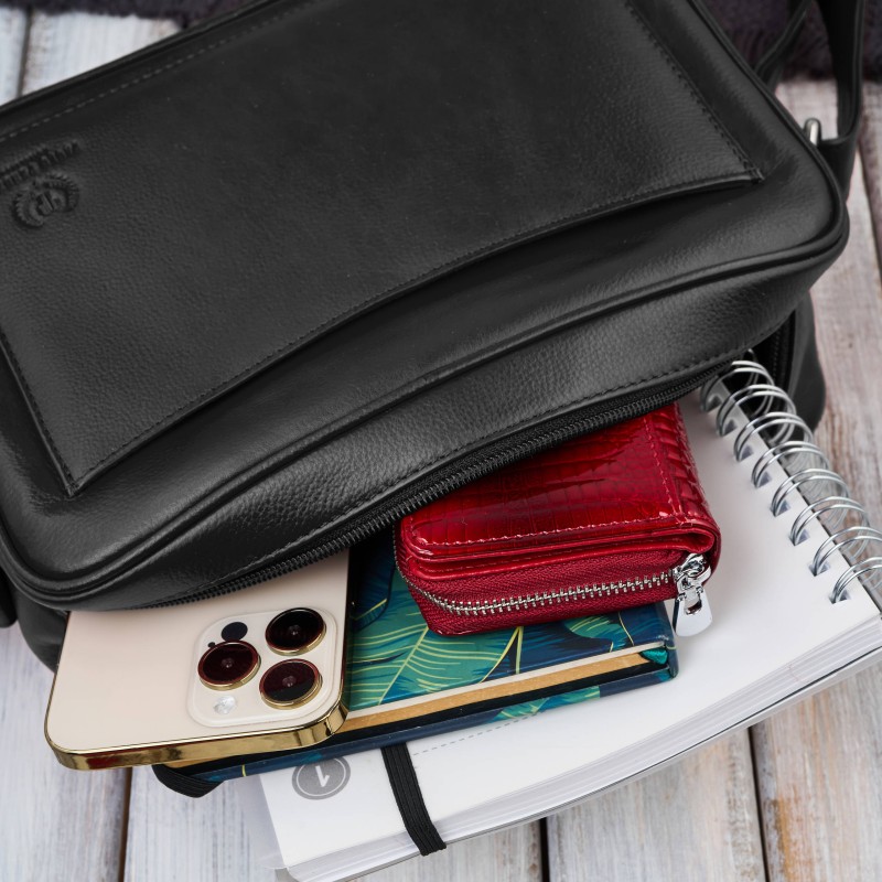 Torebka damska skórzana listonoszka na ramię czarna Paolo Peruzzi AY-20-BL