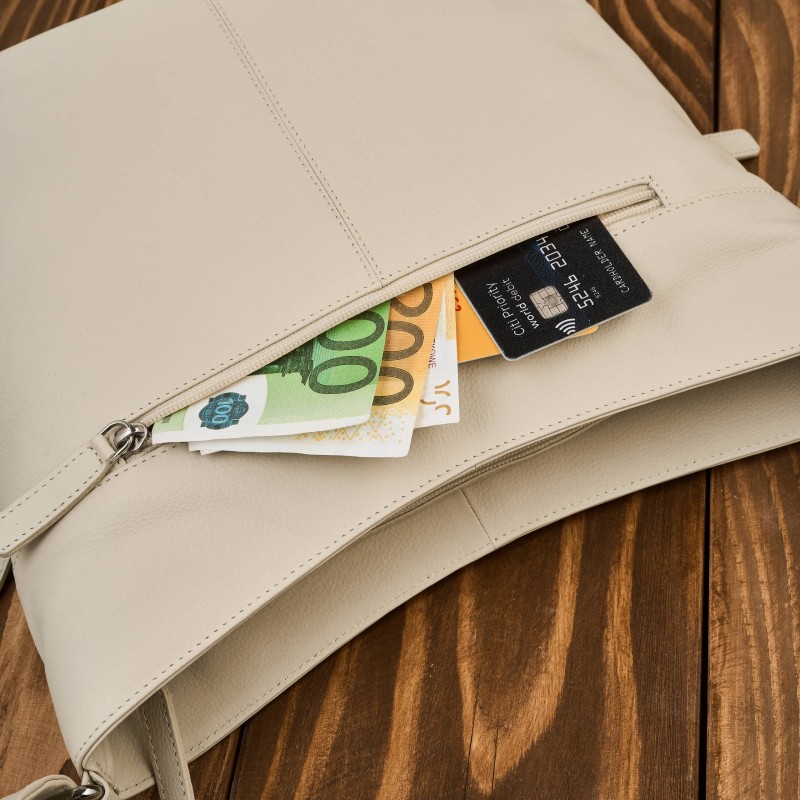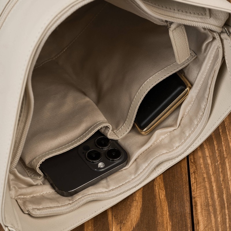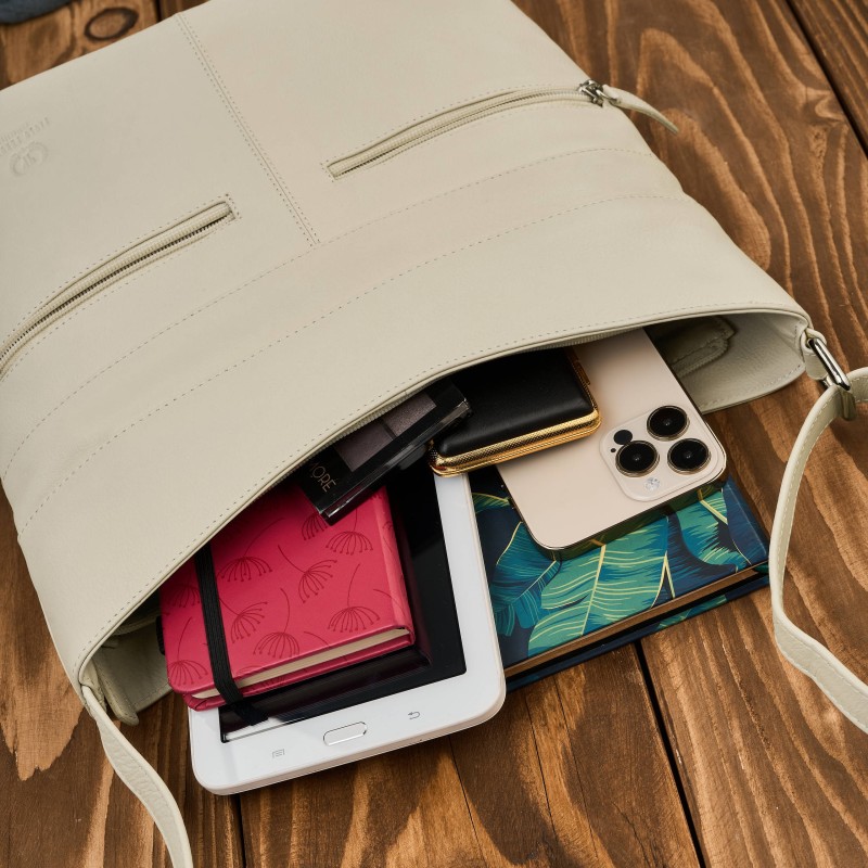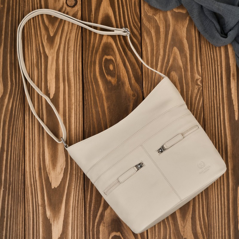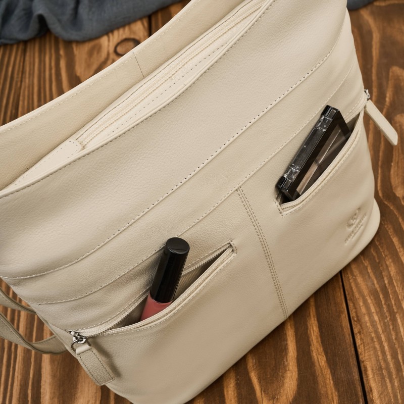Torebka damska skórzana na ramię pojemna beżowa Paolo Peruzzi AY-23-BG