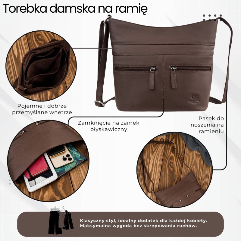Torebka damska skórzana na ramię pojemna brązowa Paolo Peruzzi AY-23-BR