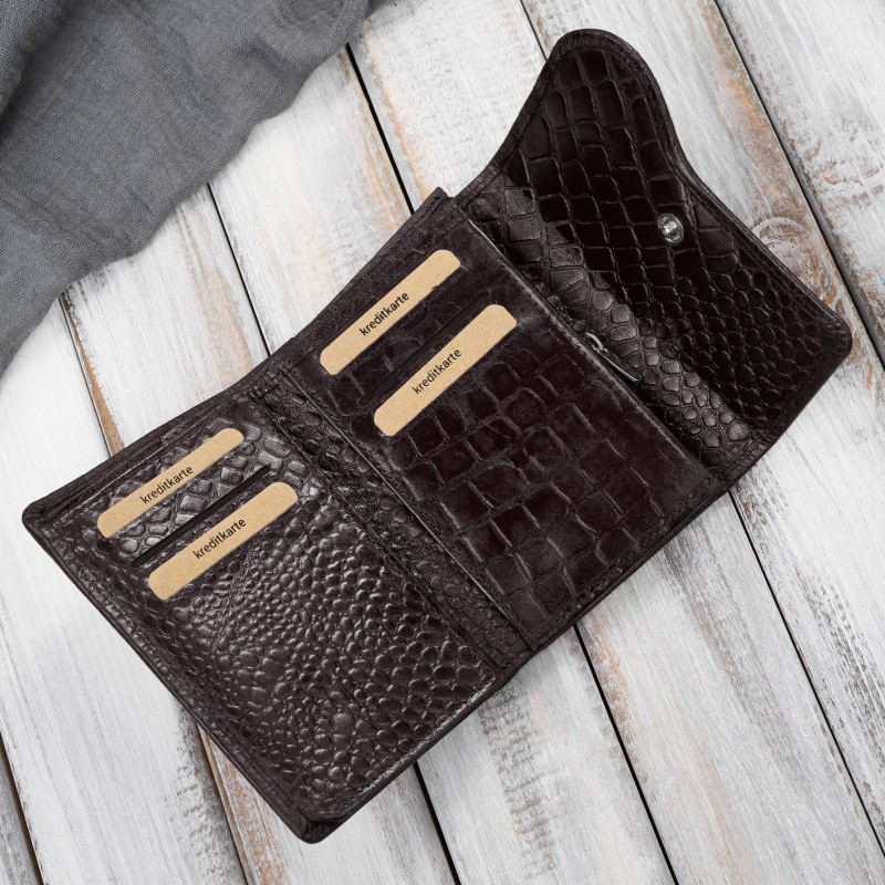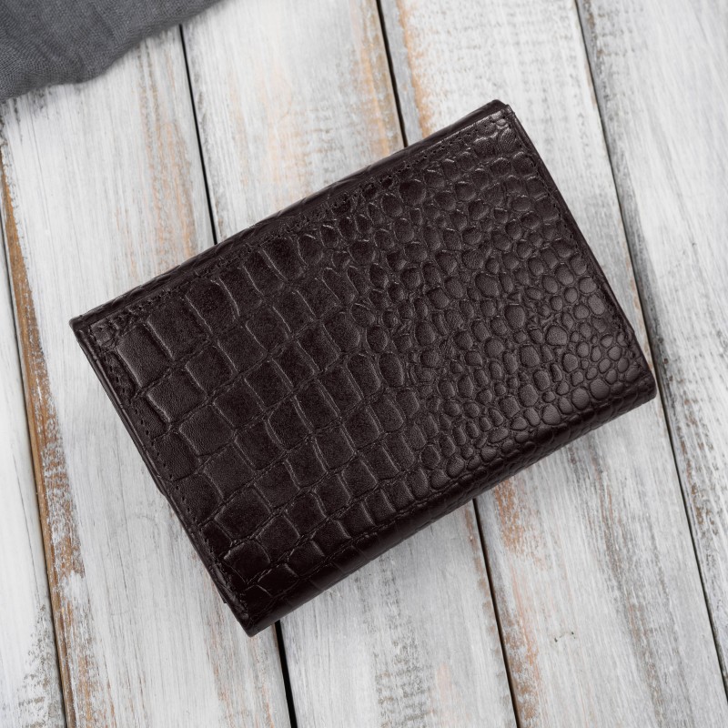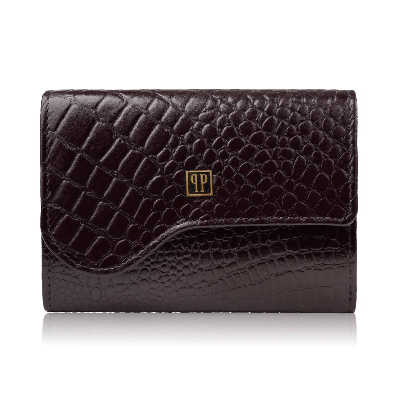 Малките дамски портфейли Paolo Peruzzi са съчетание от функционалност и вечна елегантност. Моделът T-135-BR е изработен от висококачествена естествена кожа с релефен мотив кроко. Естественият нюанс на кафявото придава на цялостната визия благородна и изтънчена елегантност. Вниманието привлича и металното лого на марката в черно и златно, което елегантно разчупва структурата на кожата и придава луксозен завършек.