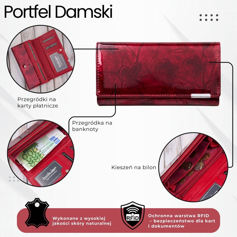- Обмислена функционалност - хоризонтална ориентация и по-голям формат: идеален за жени, които се нуждаят от място за банкноти, карти и монети.
