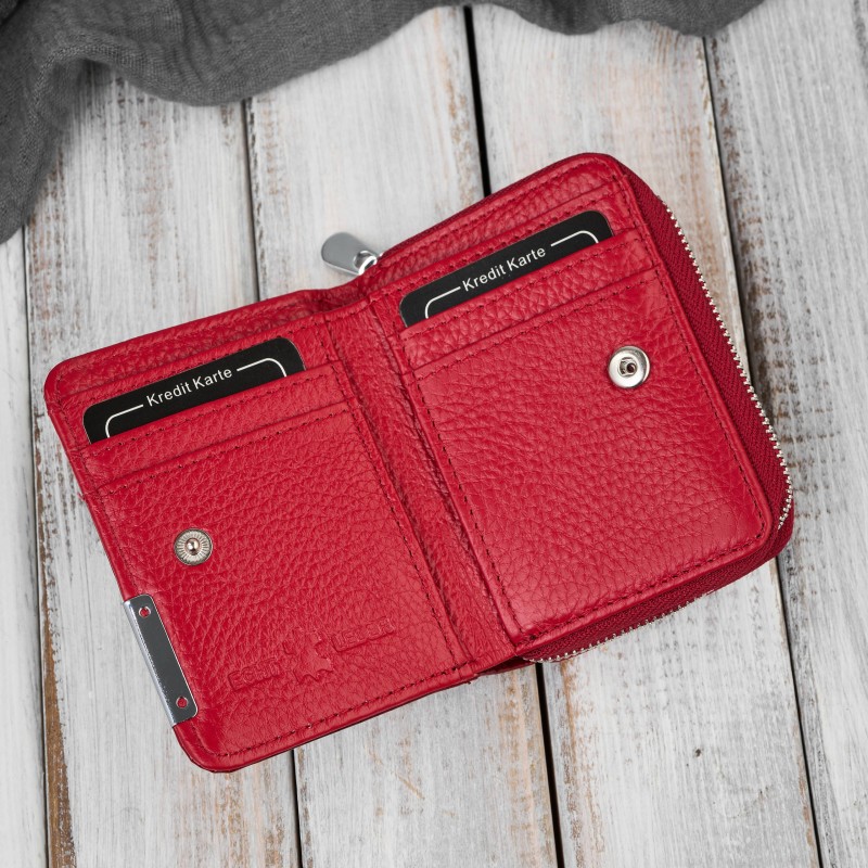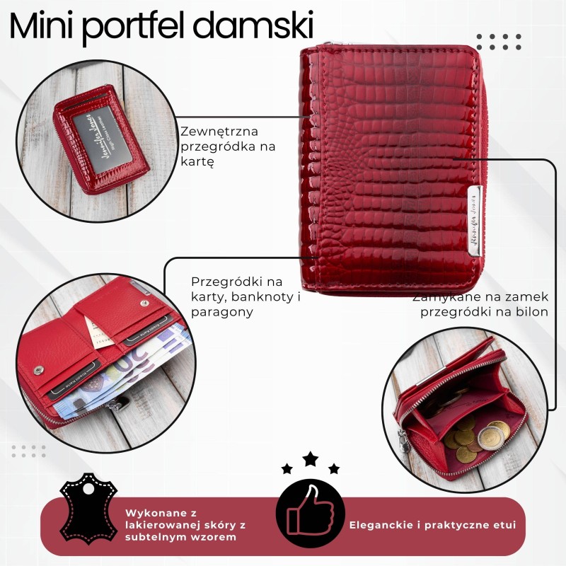 Запознайте се с дамския портфейл SP-18-RD - компактен, но характерен модел, изработен от естествена лакирана кожа в наситено червен нюанс. Той е съчетание от елегантност, практичност и нотка дързост - идеален за жени, които искат да се отличават със стил, дори и с малки аксесоари.