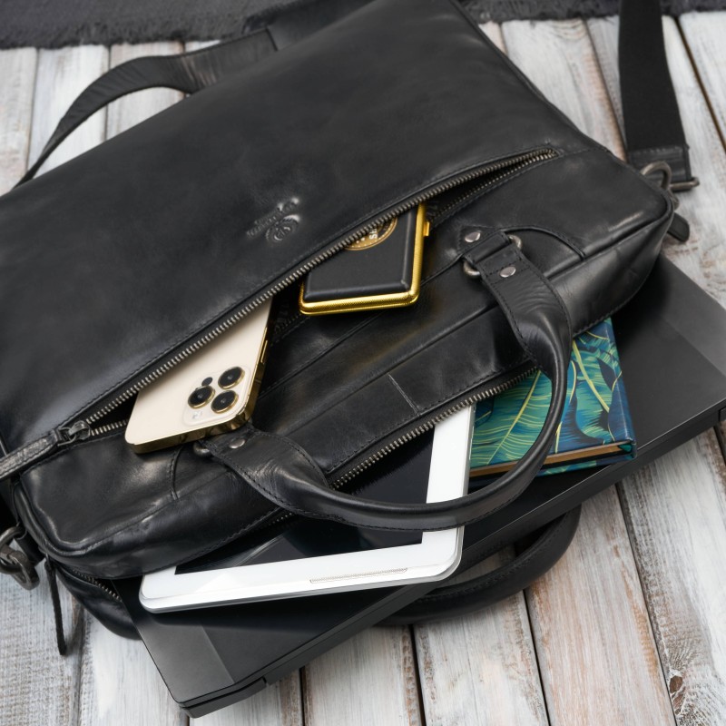 Издръжлива, еластична и елегантна - наситеното черно подчертава професионалния вид на чантата.