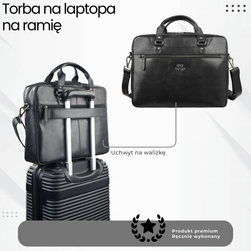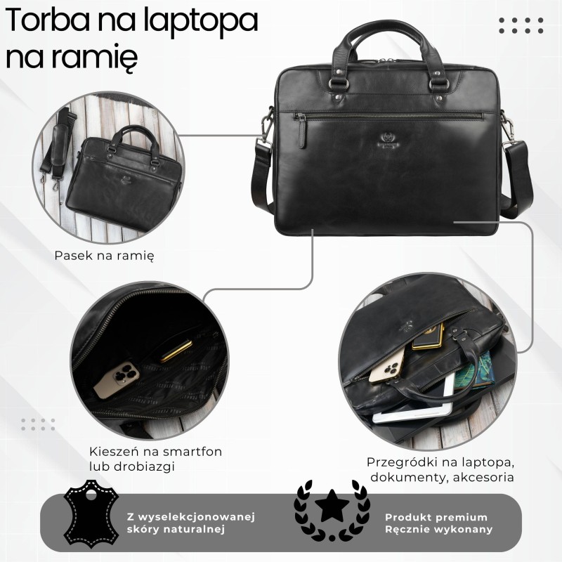 Кожената чанта за лаптоп SL-08 на Paolo Peruzzi е предложение за мъже, които ценят класическия стил, солидната изработка и пълната функционалност. Изработена от висококачествена естествена кожа, тя впечатлява с елегантния си, наситен черен цвят, който подчертава професионалния характер на чантата. Матовият сребърен обков придава фин винтидж привкус, създавайки един непреходен дизайн, който подхожда както на деловия, така и на ежедневния стил.