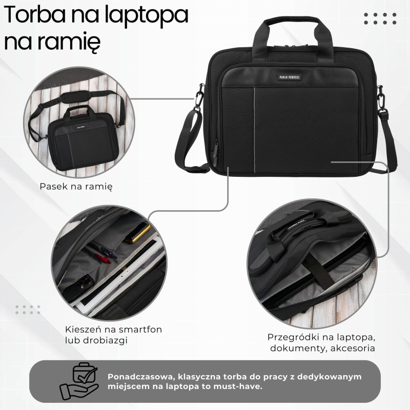 Torba na laptopa czarna unisex materiałowa lekka do ręki na ramię AS-02-BL