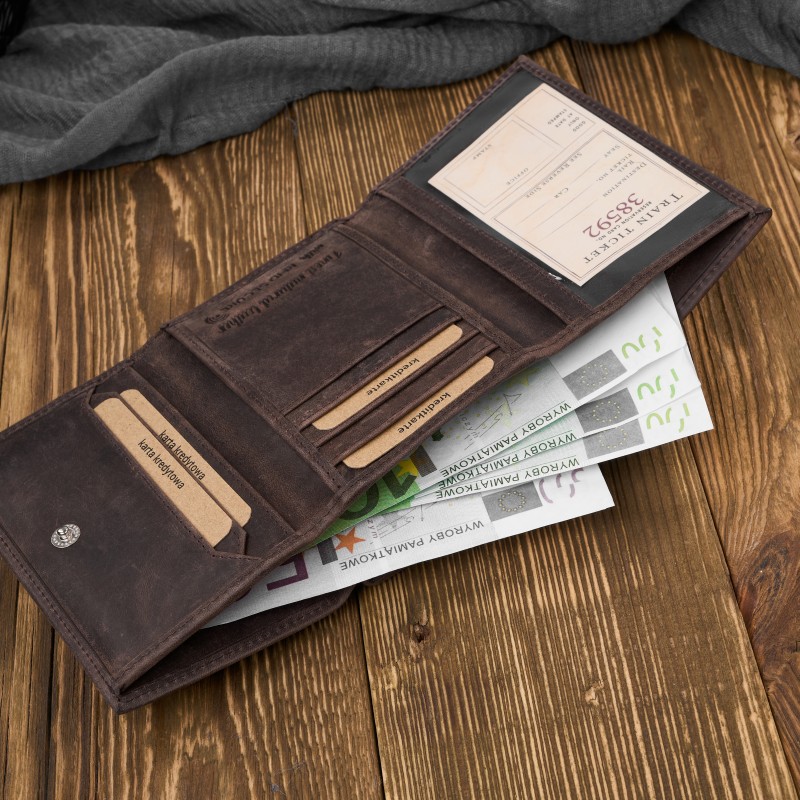 Кафяв портфейл с фин винтидж завършек ще подхожда идеално на всяка визия - от ежедневна до елегантна. Това е непреходен аксесоар, който ще подчертае вкуса ви и ще придаде характер на любимата ви кожена чанта.