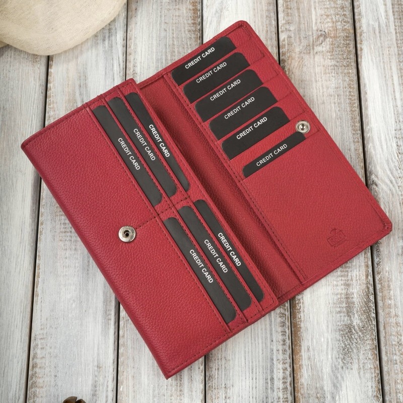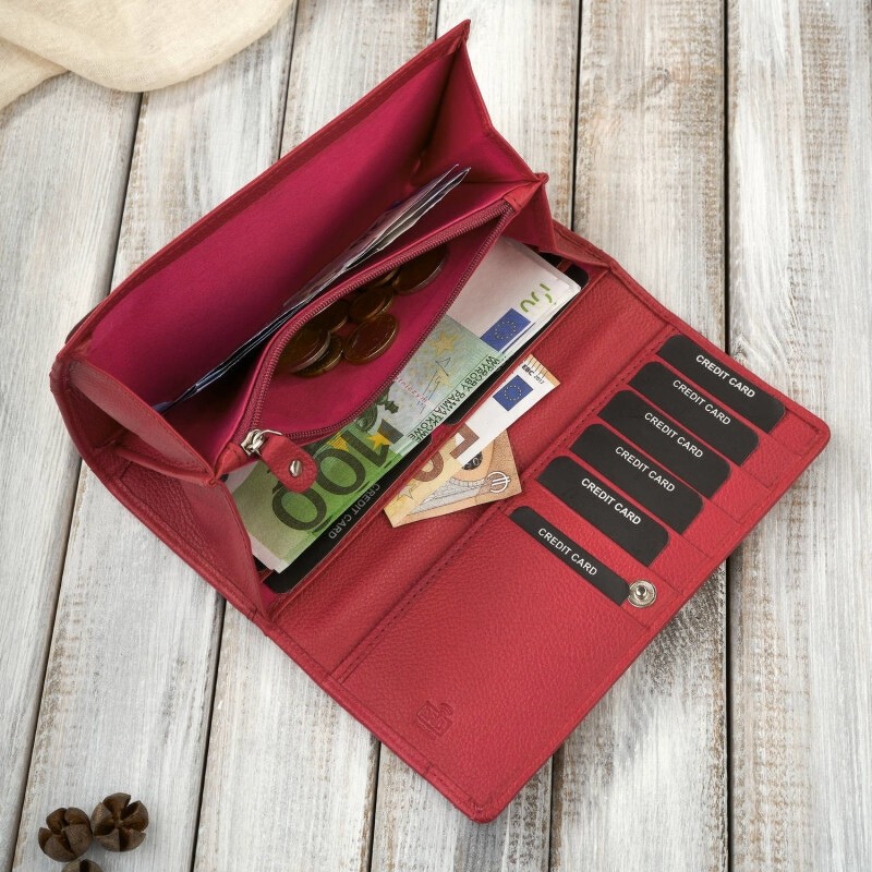 Търсите ли елегантен, обемен портфейл, който съчетава класически стил с най-високо качество на изработката? Моделът AL-01-RD на Paolo Peruzzi е предложение за жени, които ценят непреходния дизайн и функционалността. Изработен от естествена грахова кожа, той впечатлява със своята елегантност, издръжливост и перфектна завършеност. Този голям червен дамски портфейл от естествена кожа ще се превърне в любимия ви аксесоар - както за ежедневието, така и за елегантен стил.
