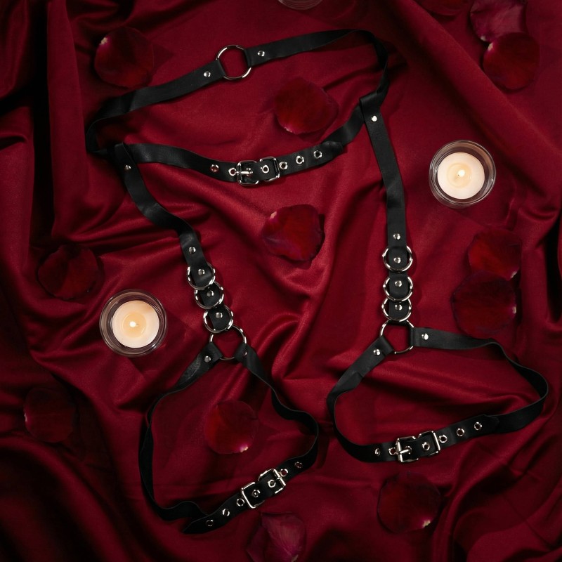 Sessuale skórzany harness na uda i talię damski czarny SES-07-BL