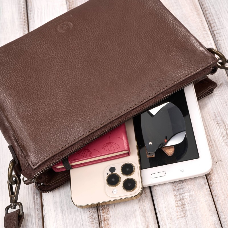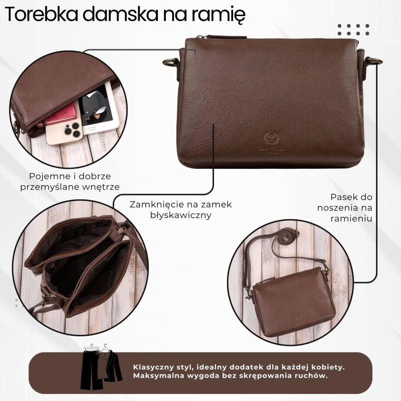 Stylová, praktická a nadčasová - tak lze ve zkratce popsat dámskou kabelku Paolo Peruzzi IM-04-BR. Model byl vyroben z kvalitní přírodní hrachové kůže, která je známá svou výjimečnou odolností a elegantní strukturou. Kůže je odolná vůči poškrábání, znečištění a mechanickému poškození, díky čemuž si kabelka dlouho zachovává svůj bezvadný vzhled a snadno se udržuje.