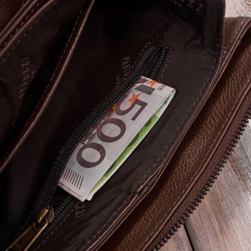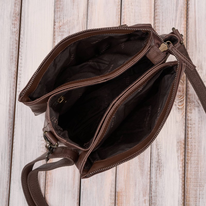 Designéři značky Paolo Peruzzi v této kabelce spojili kompaktní rozměry se skvělou funkčností. Tři objemné přihrádky uzavírané pevnými kovovými zipy ve zlaté barvě vytvářejí prostor, do kterého se snadno vejdou potřebné věci - telefon, peněženka, klíče nebo kosmetika. Díky chytré konstrukci lze objem tašky zvětšit, když potřebujete více místa.