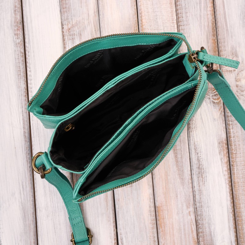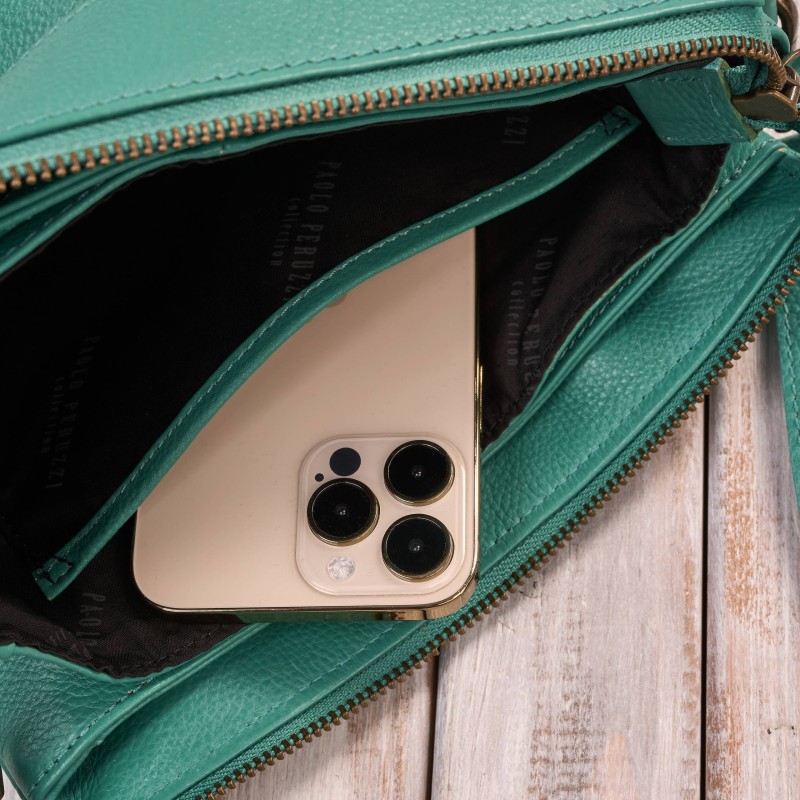 Designéři značky Paolo Peruzzi v této kabelce spojili kompaktní rozměry se skvělou funkčností. Tři objemné přihrádky uzavírané pevnými kovovými zipy ve zlaté barvě vytvářejí prostor, do kterého se snadno vejdou potřebné věci - telefon, peněženka, klíče nebo kosmetika. Díky chytré konstrukci lze objem tašky zvětšit, když potřebujete více místa.
