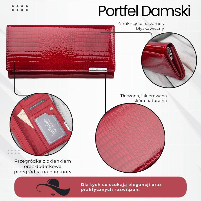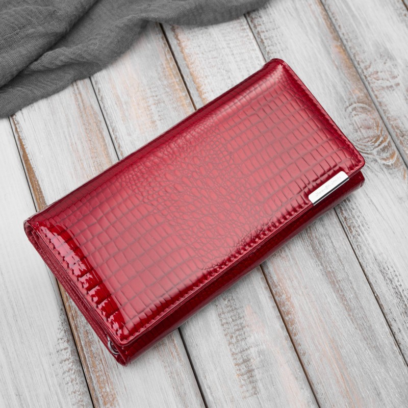 Seznamte se s výjimečným modelem SP-16-CRD - luxusní dámskou koženou peněženkou s ražbou ve stylu croco, vyrobenou z lakované kůže nejvyšší kvality. Jedná se o nabídku pro ženy, které chtějí v jednom doplňku spojit eleganci, odolnost a nadčasový šik.