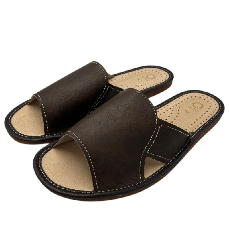 Klasické pánské pantofle R.41 hnědé s měkkou koženou stélkou KM-14-BR-41
