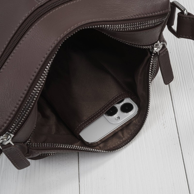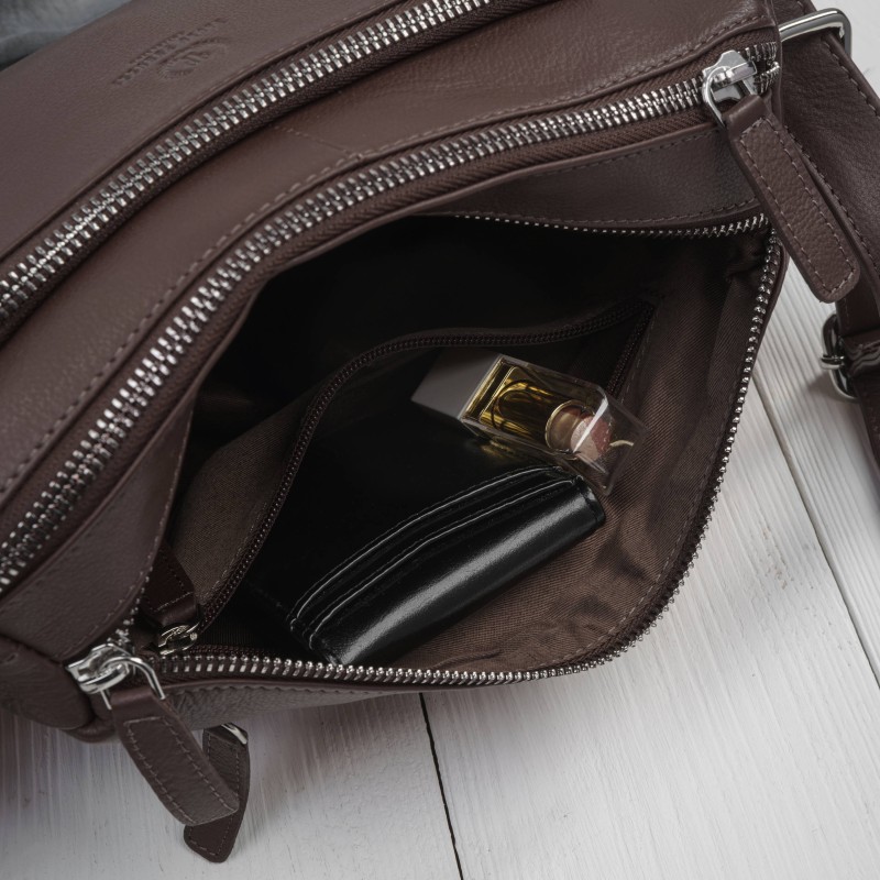 Je vyrobena z vysoce kvalitní přírodní kůže v univerzální hnědé barvě, která dodá teplo a třídu každé stylizaci a zároveň podtrhne její nadčasový charakter. Tento model kombinuje funkčnost s elegancí - ideální pro ženy, které ocení klasické doplňky s nádechem modernosti.