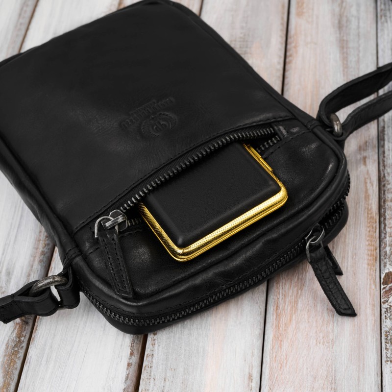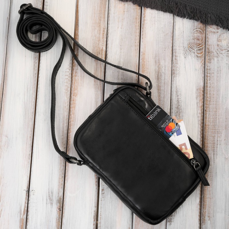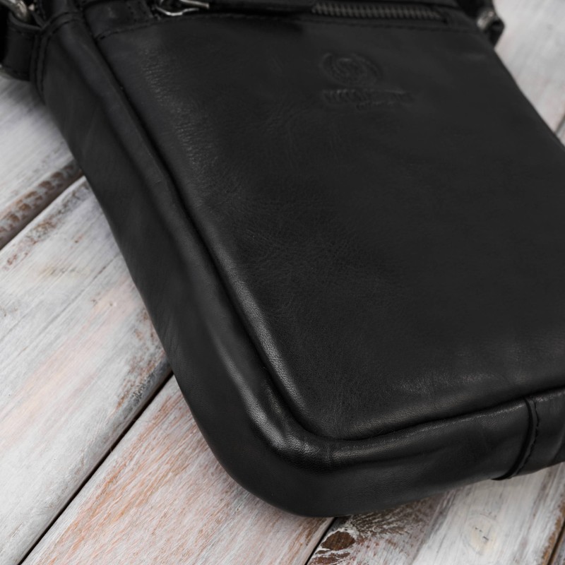 Saszetka męska skórzana na ramię klasyczna czarna mała funkcjonalna Paolo Peruzzi SL-03-BL