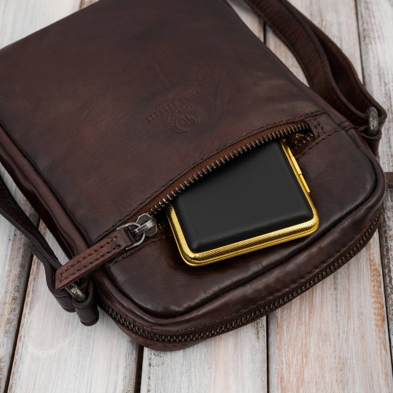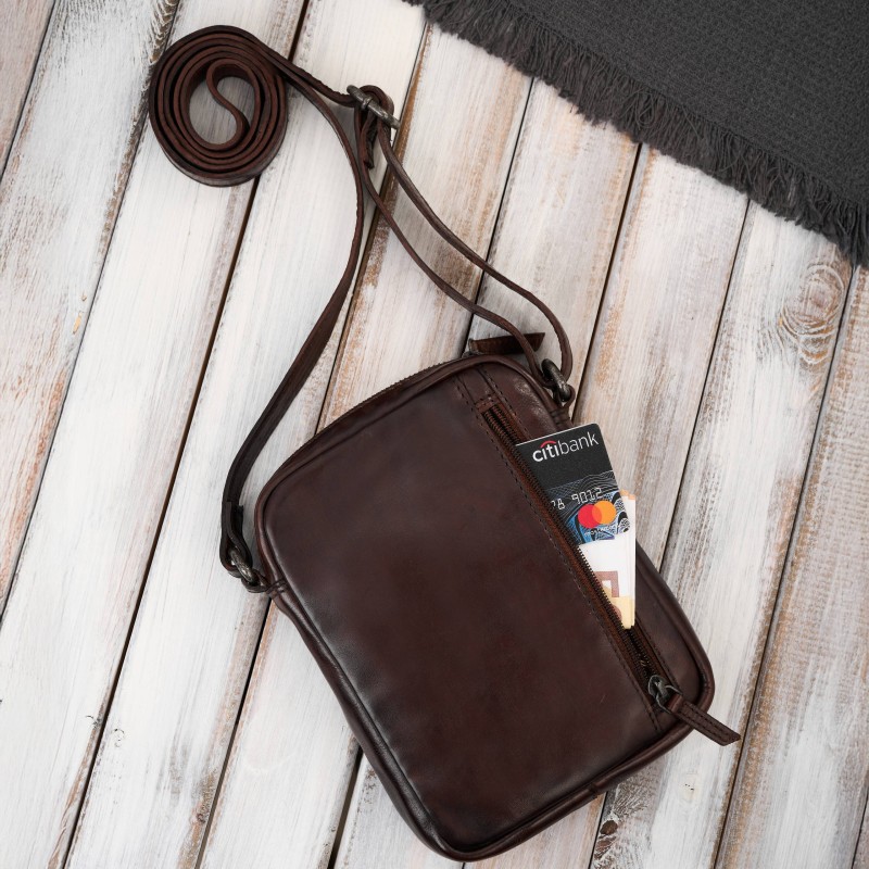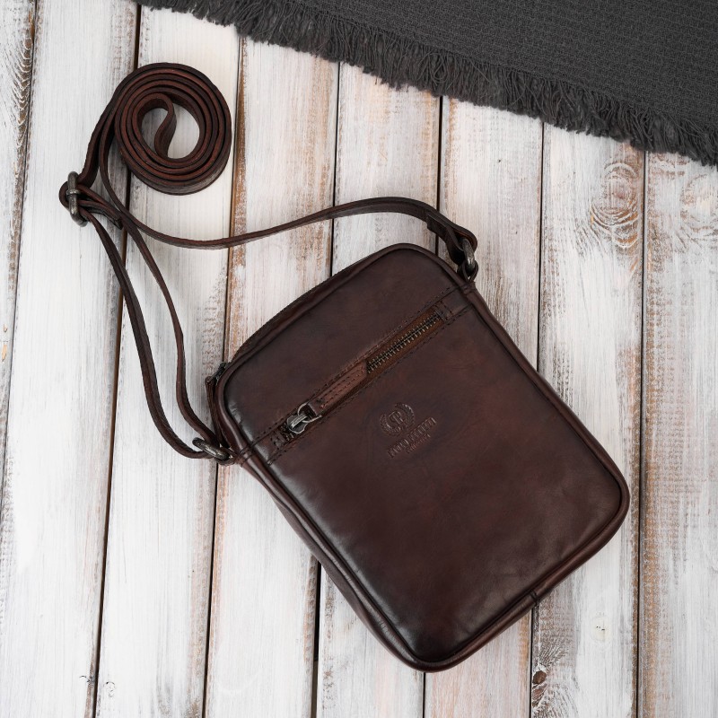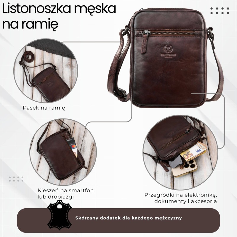 Saszetka męska skórzana na ramię klasyczna brązowa mała funkcjonalna Paolo Peruzzi SL-03-BR