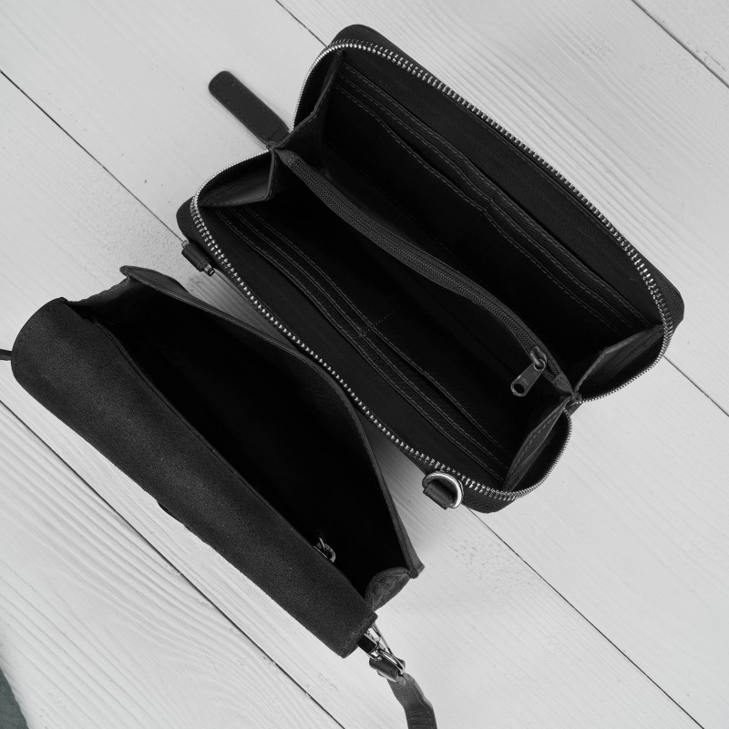 Hlavní část tvoří elegantní malá dámská kabelka, která se zapíná na magnetický klip - ideální pro každodenní nošení. Druhým modulem je tenká kabelka se zipem, která slouží jako praktický organizér. Díky magnetickým klipům můžete oba prvky během několika sekund spojit do jednoho celku nebo je používat samostatně.