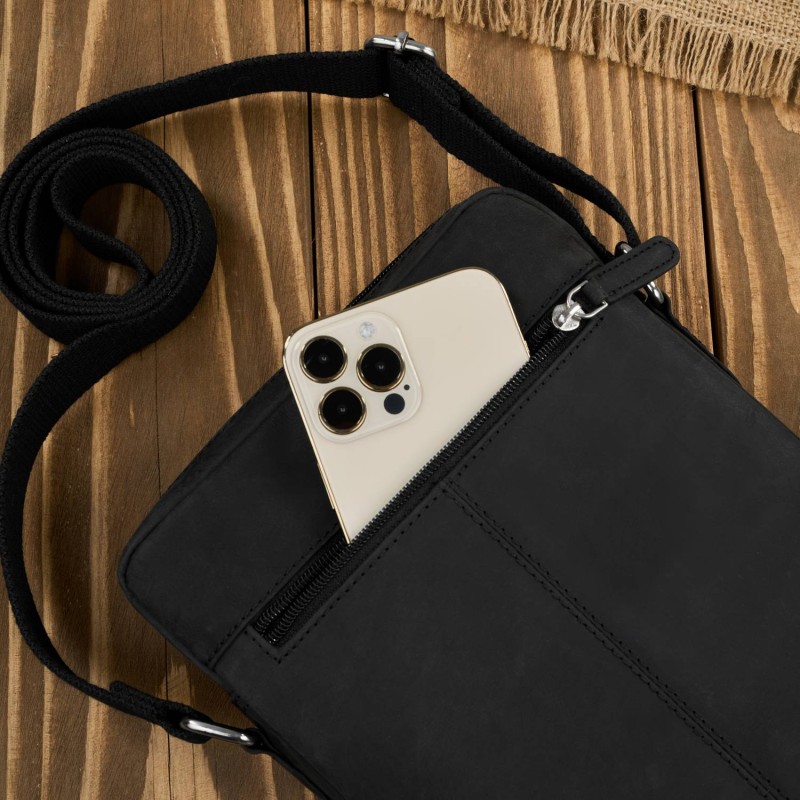 Peněženka je vyrobena z přírodní lovecké kůže, která jí dodává jedinečný, nezaměnitelný vintage charakter. Černá verze vypadá mimořádně elegantně a univerzálně - je to taška, kterou snadno sladíte s jakoukoli stylizací.