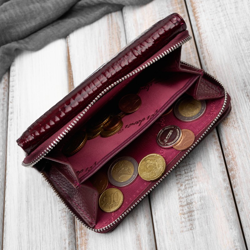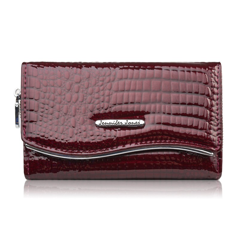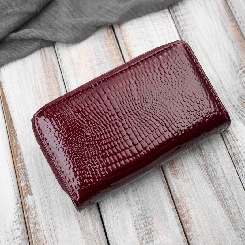 Portfel damski skórzany lakierowany z tłoczeniem croco burgundowy SP-24-CBGD