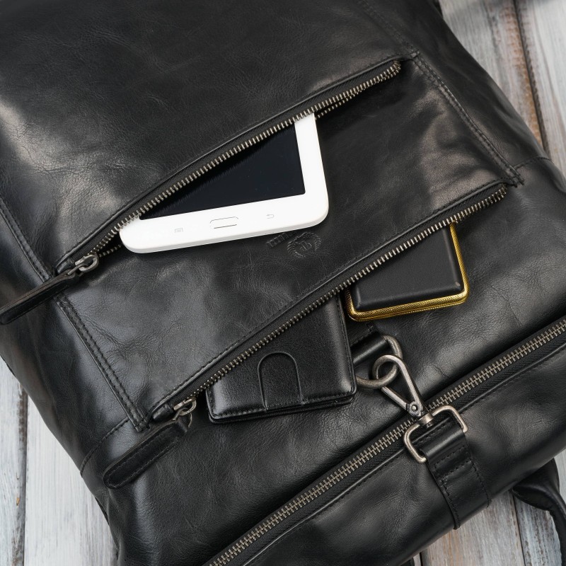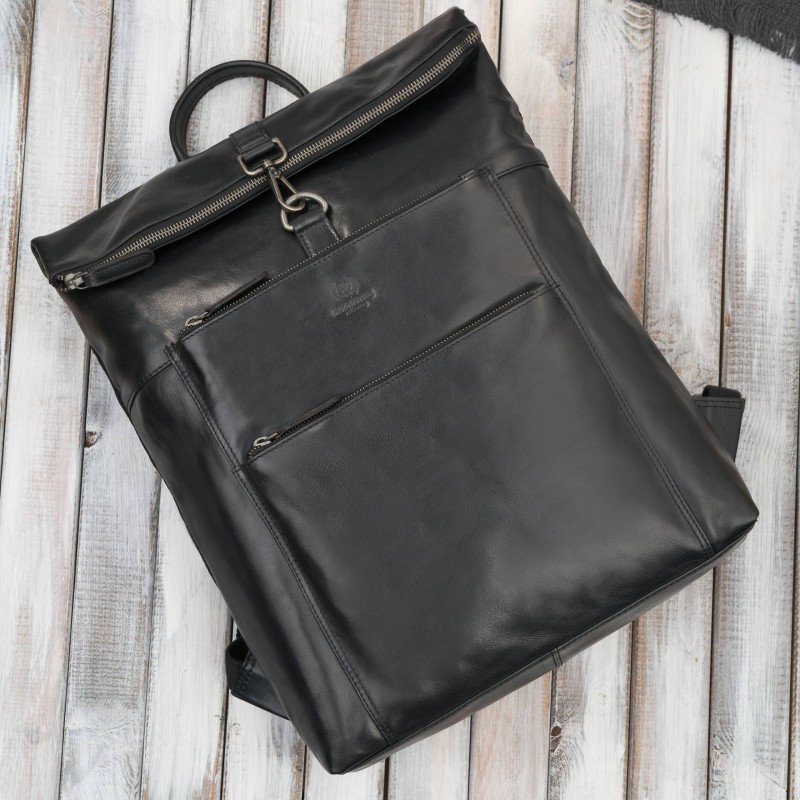 Roll top with double security - metal lock + snap hook guarantee security and elegant appearance.