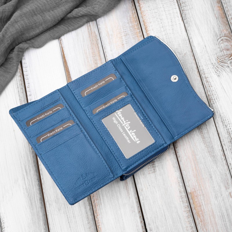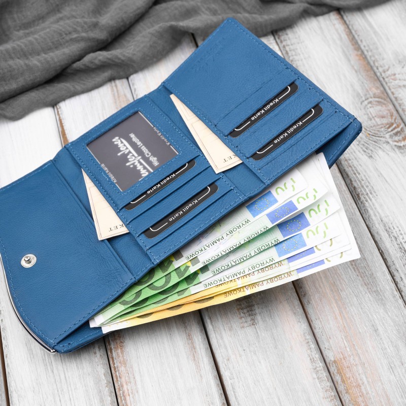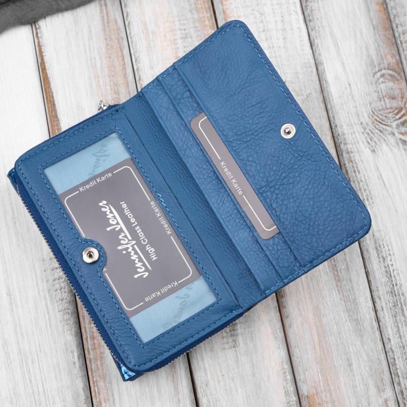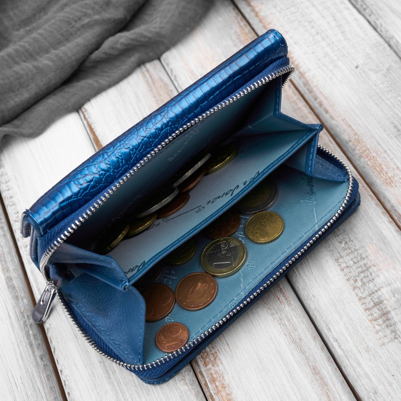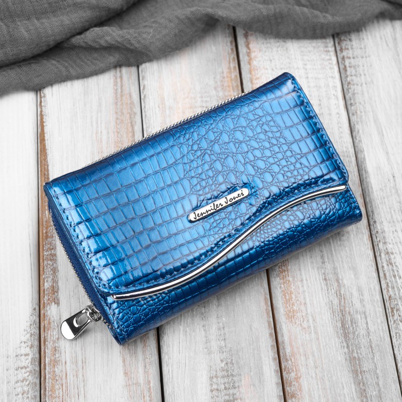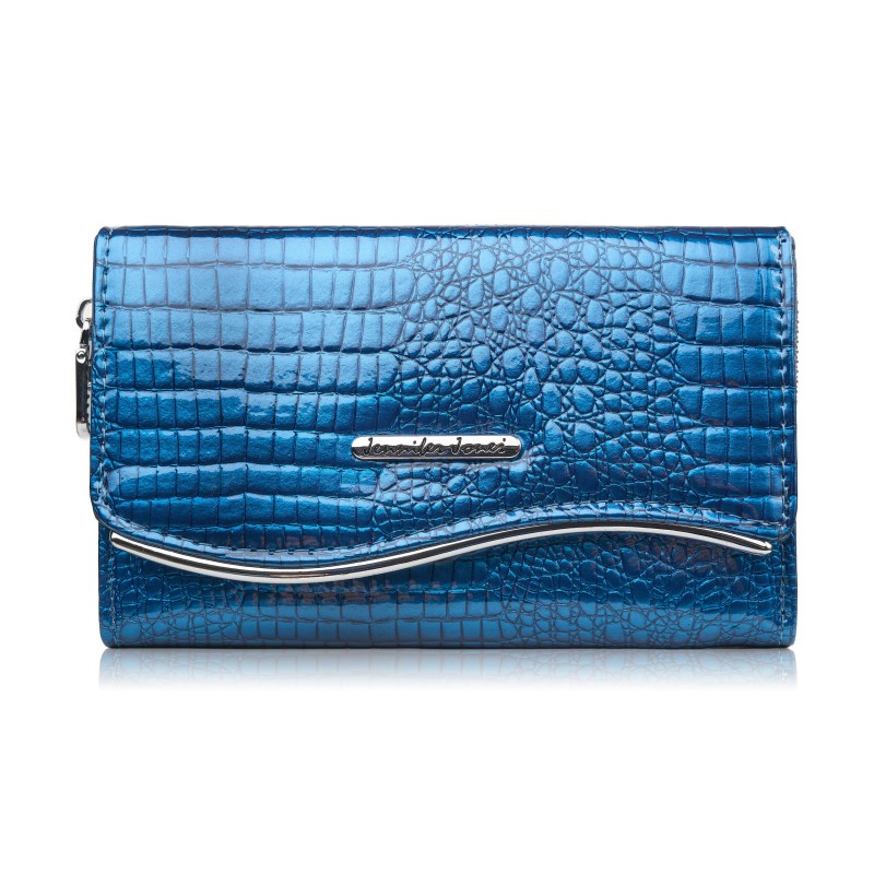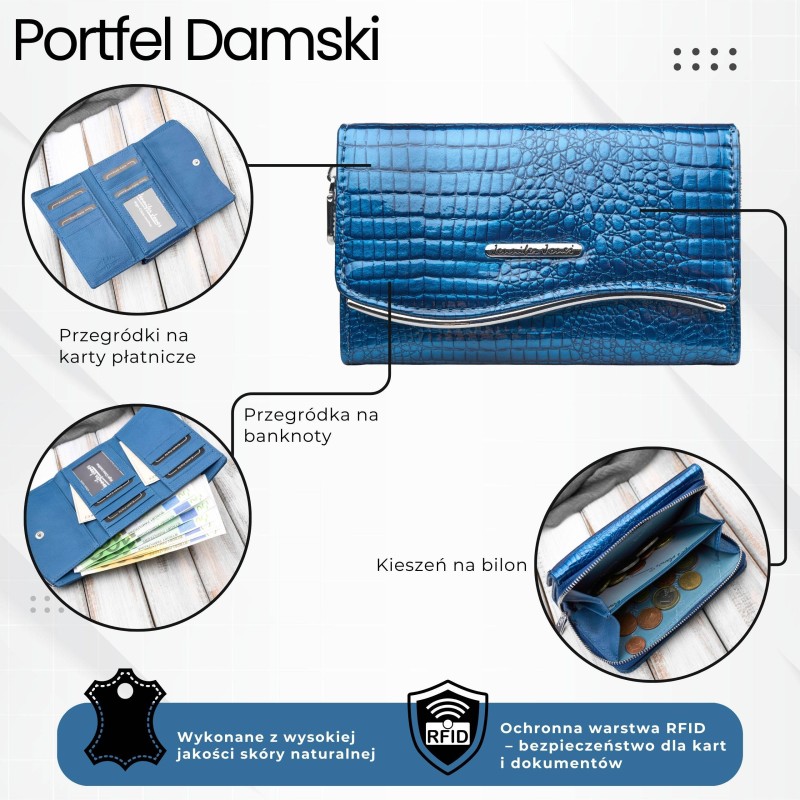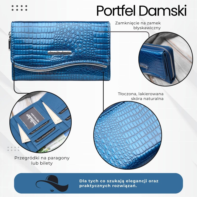 Portfel damski skórzany lakierowany z tłoczeniem croco niebieski SP-24-CDB