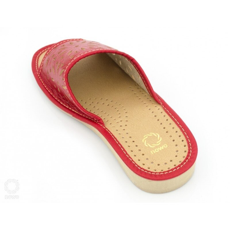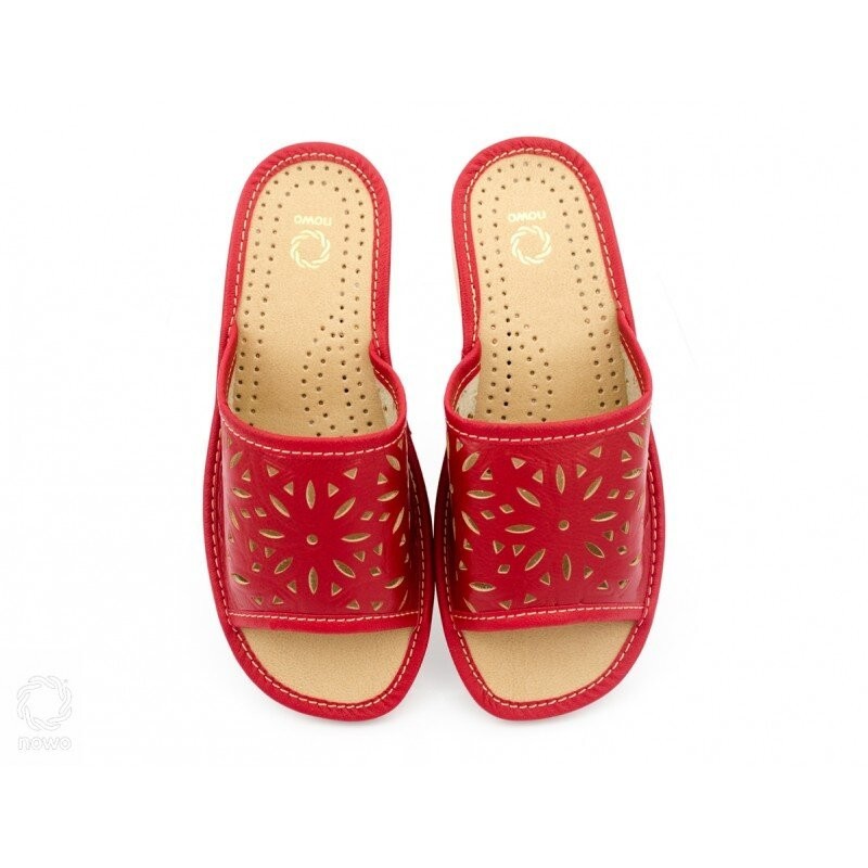 Comfort and elegance at home! These women's slippers in intense red are a combination of functionality and style. The upper made of high-quality, perforated synthetic leather with a decorative openwork pattern provides adequate air circulation, protecting the foot from overheating. Soft, profiled insole with fine perforation takes care of comfort even throughout the day. The slippers have a lightweight, non-slip sole, which provides stability on various surfaces, and careful stitching highlights their solid workmanship.