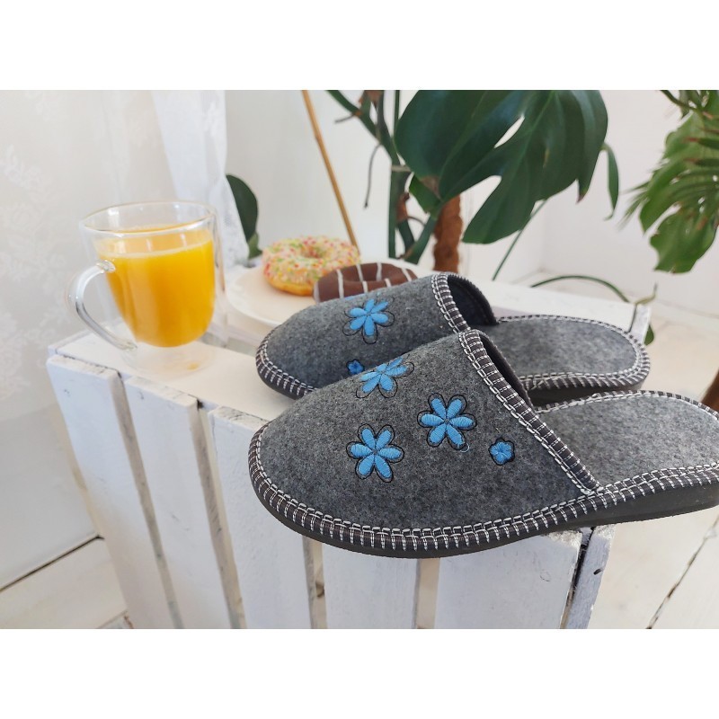 Women's slippers R.40 felt grey with flowers comfortable warm KD-08-NB-40