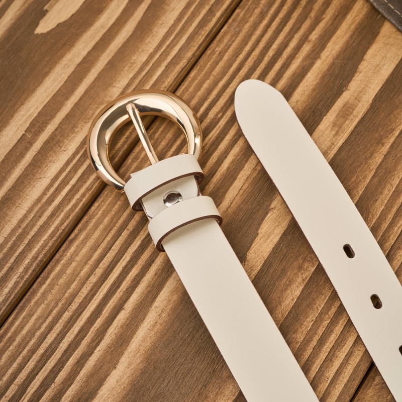 Women's leather belt 90 cm for pants narrow cream face gold buckle PG-13-ECRZ-90