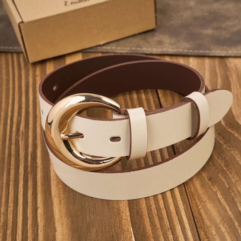 The model was made of natural grain leather, resistant to deformation and abrasion. The smooth texture of the material corresponds beautifully with the solid, shiny buckle in gold - it's what gives the whole design a distinctive character. The belt is flexible, comfortable and refined in every detail, so it will serve you for many seasons.