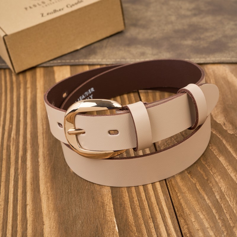 Pasek damski skórzany do spodni 90 cm wąski beżowy licowy złota klamra PG-14-BZ-90