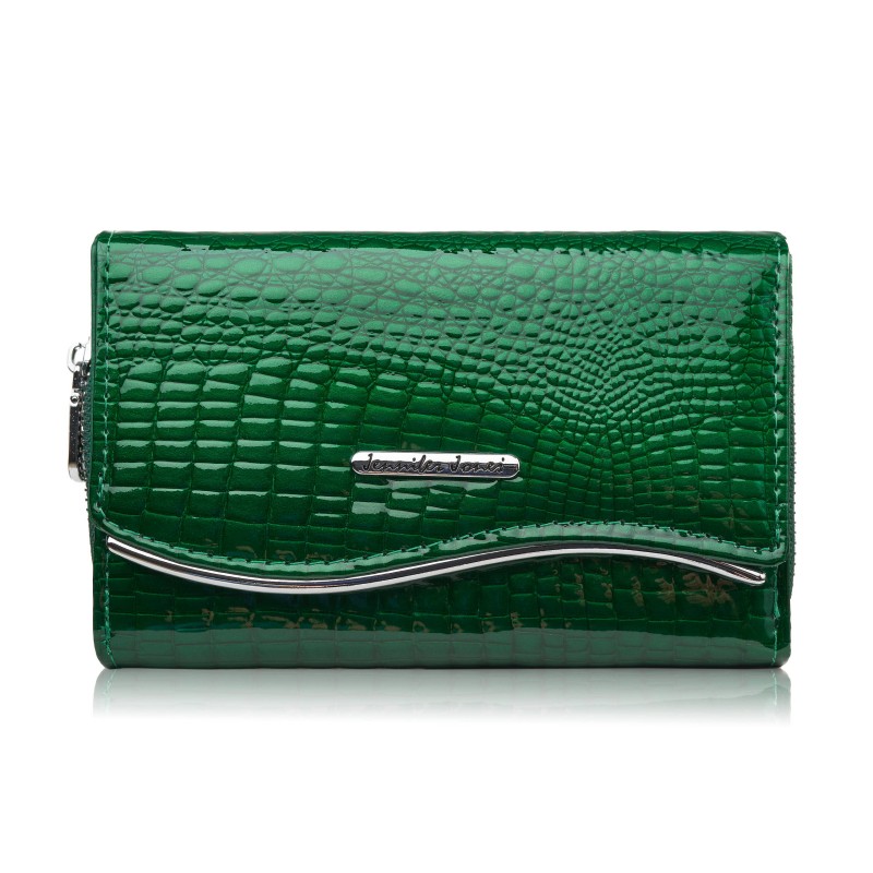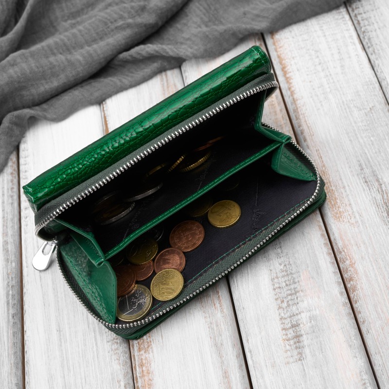 Portfel damski skórzany lakierowany z tłoczeniem croco zielony SP-24-CGRN