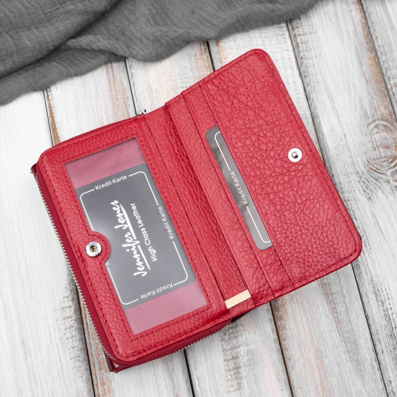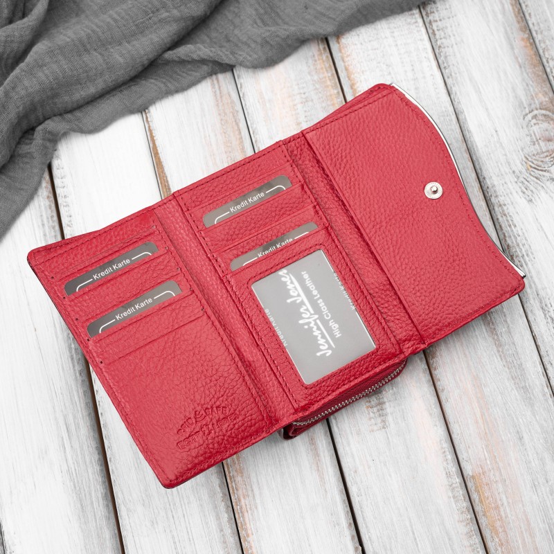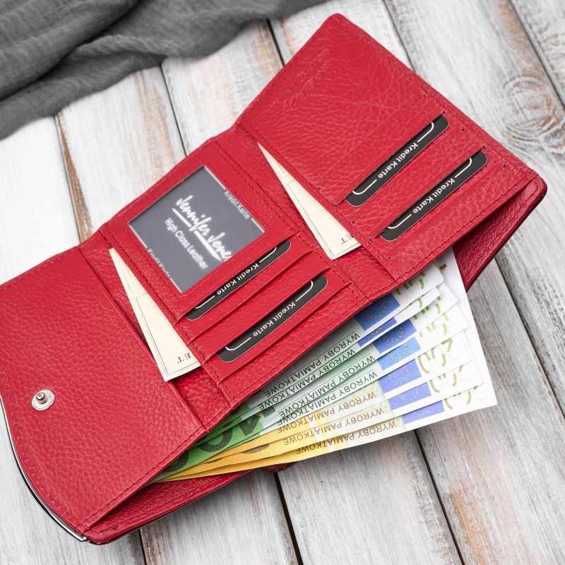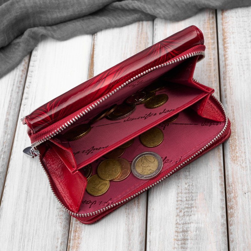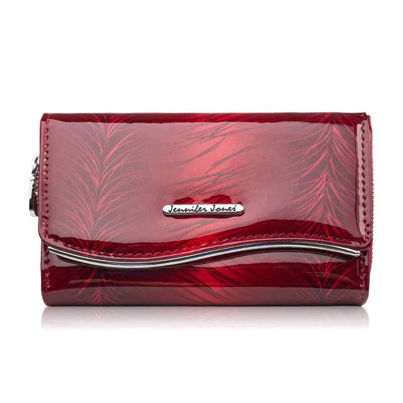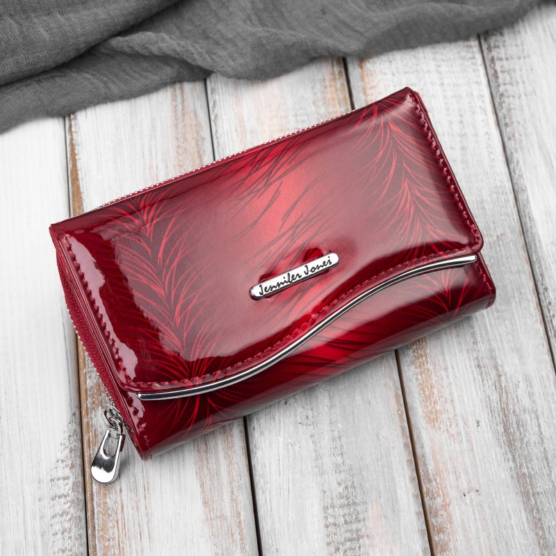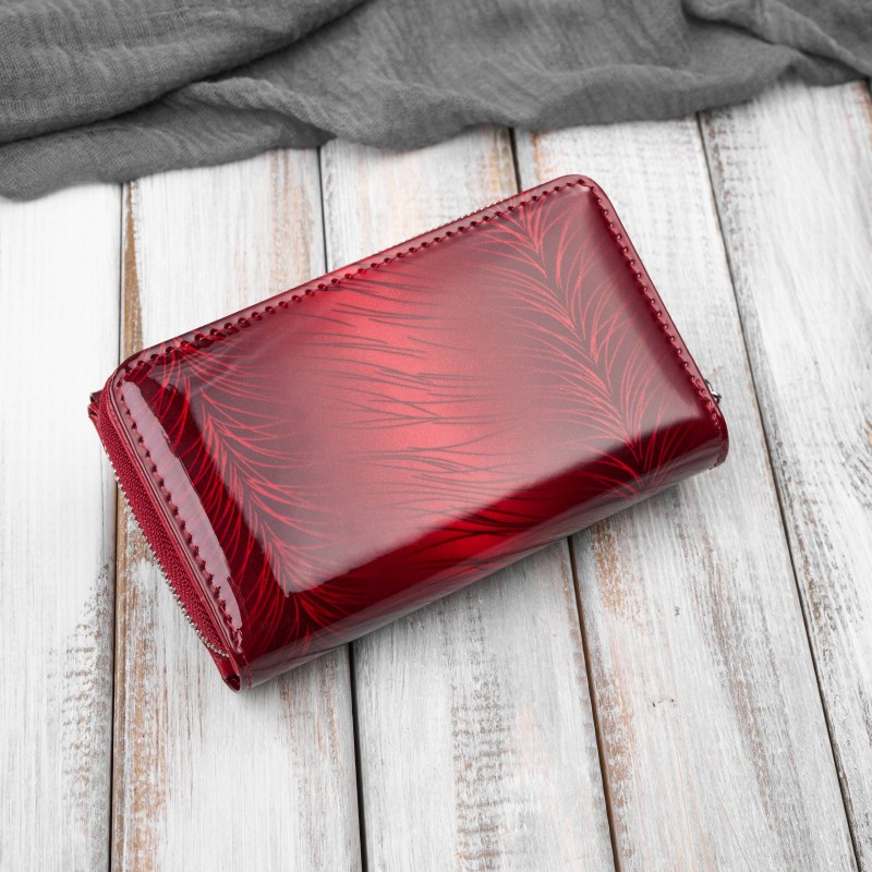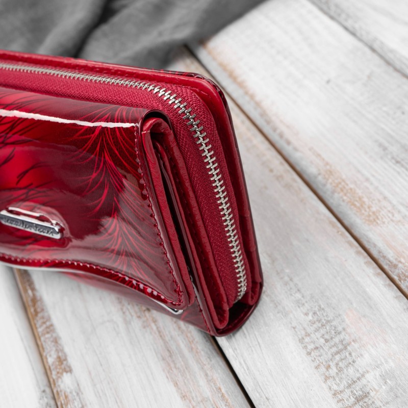 Portfel damski skórzany lakierowany z roślinnym wzorem czerwony SP-24-RD