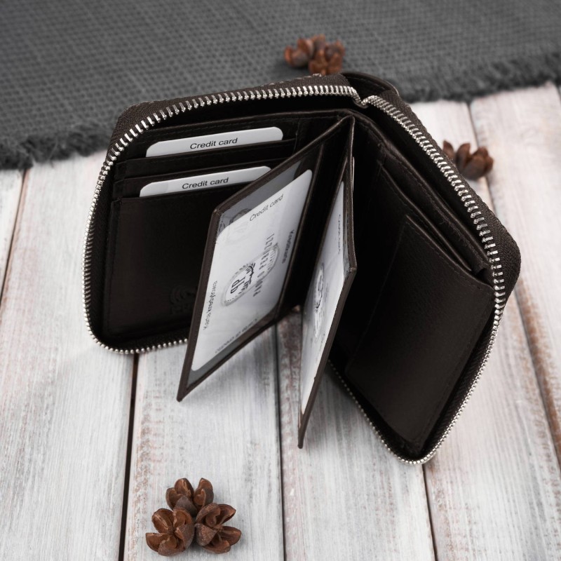 ✓ Zamknięcie na zamek: Portfel zapinany jest na mocny zamek błyskawiczny, który chroni jego zawartość i zapobiega przypadkowemu wysypaniu się zawartości.