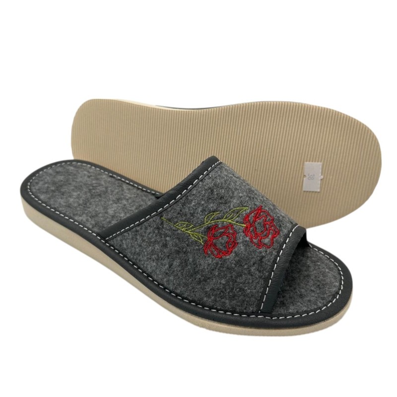 Kapcie damskie R.40 ekologiczny filc haftowane klapki domowe lekkie i ciepłe KD-06-GR-40