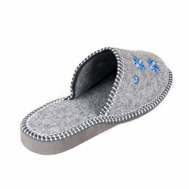 Szukasz kapci, które będą nie tylko wygodne, ale też stylowe i praktyczne? Model KD-08 to doskonałe połączenie klasycznego kroju, solidnego wykonania i delikatnego, kobiecego wzornictwa. Te filcowe kapcie damskie zostały stworzone z myślą o komforcie użytkowania przez cały dzień – szczególnie w chłodniejsze miesiące. Ciepłe, wygodne kapcie damskie wykonane z miękkiego filcu. Model KD-08 to doskonały wybór na chłodniejsze dni – materiał zapewnia dobrą izolację termiczną, a haftowane, niebieskie kwiaty dodają uroku i kobiecego stylu. Idealne do codziennego użytku w domu.