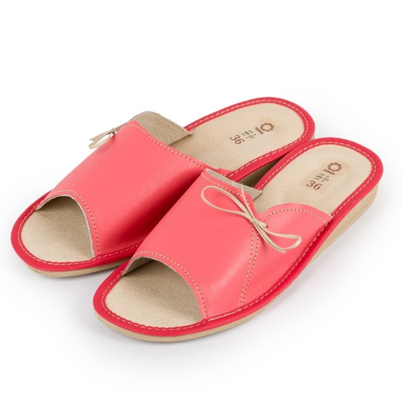 Wprowadź do swojego domu odrobinę koloru i komfortu dzięki kapciom damskim KD-10-PI. Ich elegancki, otwarty fason w pięknym odcieniu czerwono-różowym idealnie łączy kobiecy styl z codzienną funkcjonalnością. Cholewka została wykonana z wysokiej jakości skóry syntetycznej, która jest łatwa w pielęgnacji i odporna na odkształcenia. Subtelna kokardka z przodu dodaje całości uroku, tworząc estetyczny i nowoczesny wygląd. Wnętrze kapci wyściełane jest miękkim materiałem, który zapewnia wygodę przez cały dzień. Profilowana skórzana wkładka dba o komfort stopy, a lekko podwyższona podeszwa nadaje sylwetce lekkości i dobrze amortyzuje kroki.