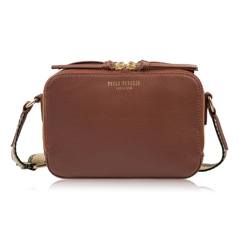 Wewnątrz znajdziesz dwie komory oraz dodatkową kieszeń, które ułatwiają organizację drobiazgów. Całość została wykończona elegancką podszewką z logo Paolo Peruzzi. Regulowany pasek (70–120 cm) pozwala na noszenie torebki zarówno crossbody, jak i na ramieniu.