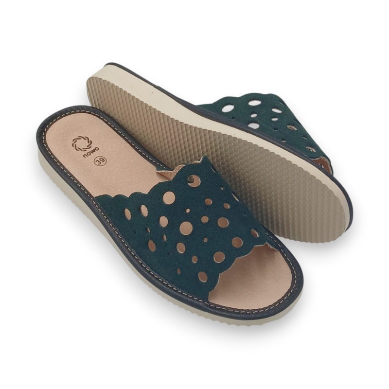 Pantofle damskie skórzane KD-20-GRE wykonane z naturalnej skóry. Wygodne, lekkie i antypoślizgowe kapcie zapewniają komfort oraz stabilność. Polecane dla seniorów i osób z problemami ortopedycznymi. Idealne do codziennego użytku domowego.