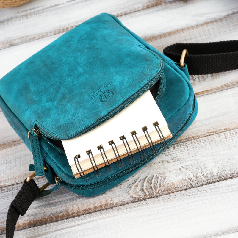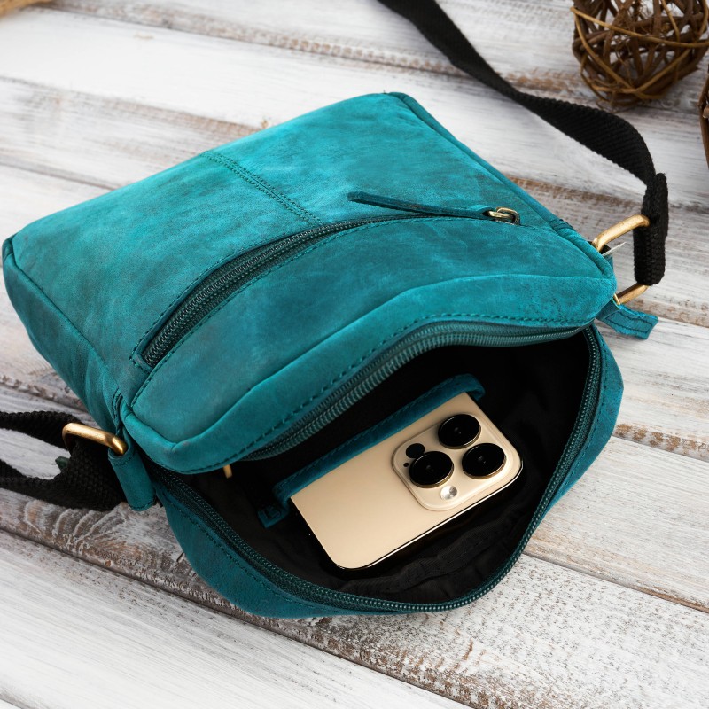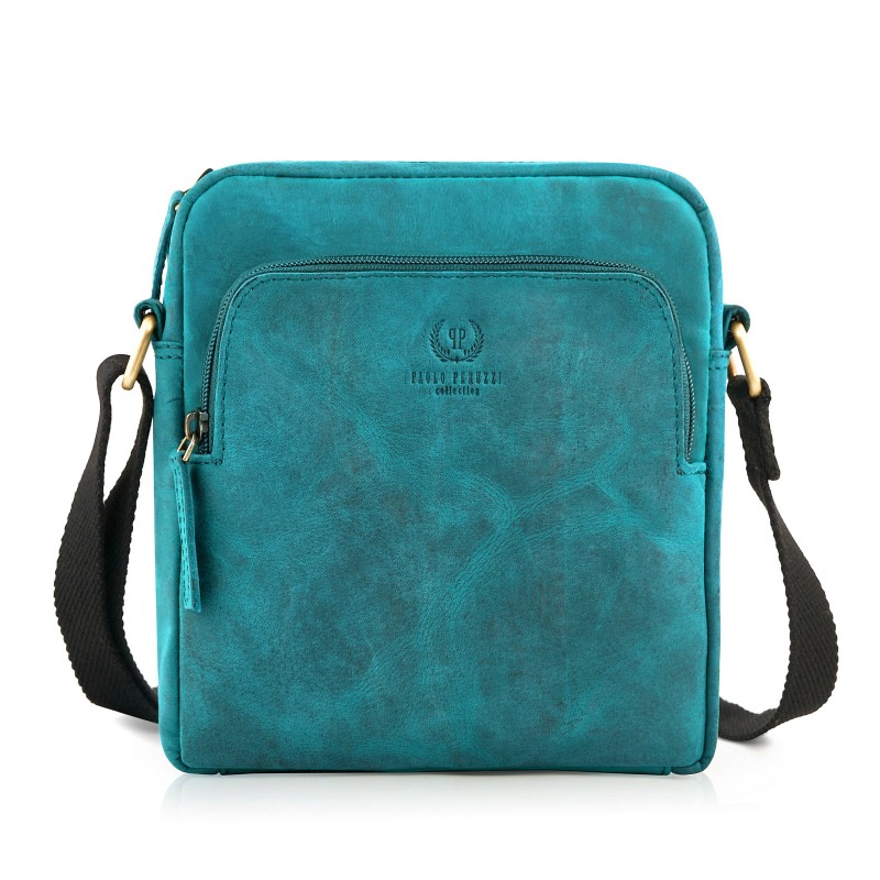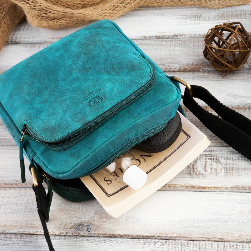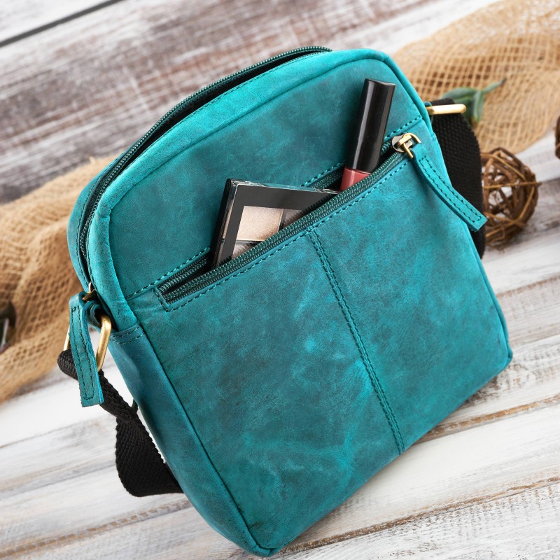 Zielona torebka na ramię T-63-GR została wykonana ze skóry naturalnie postarzanej, wraz z intensywnością użytkowania będzie nabierała indywidualnego charakteru - poprzez zarysowania i patynowanie. Komora główna zapinana posiada wewnętrzną kieszonkę na zamek oraz wsuwkę na telefon. Najczęściej wyciągane akcesoria schowasz we frontowej lub tylnej kieszeni. Regulowany pasek sprawi, że maksymalnie zwiększysz komfort noszenia listonoszki, poprzez dopasowanie jej do preferencji i wzrostu.