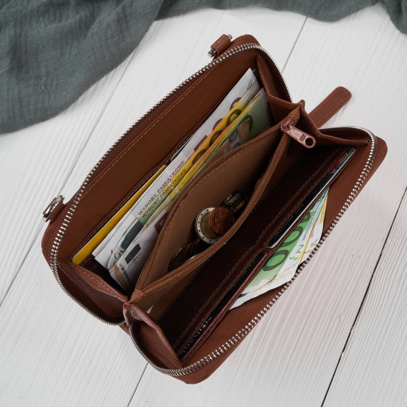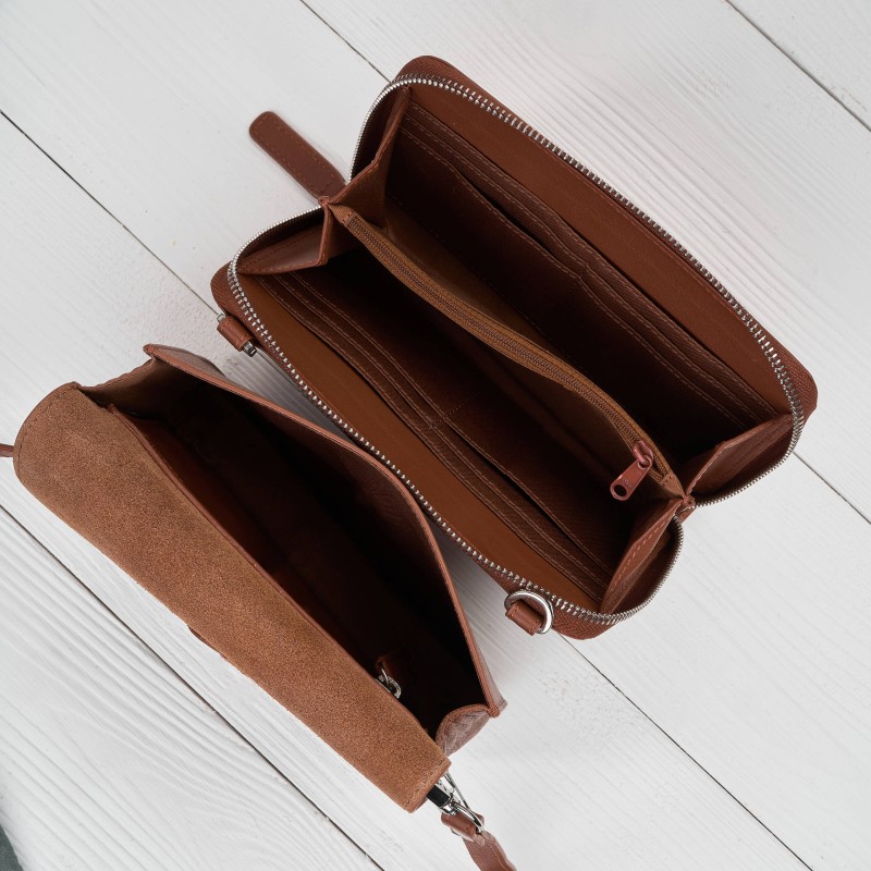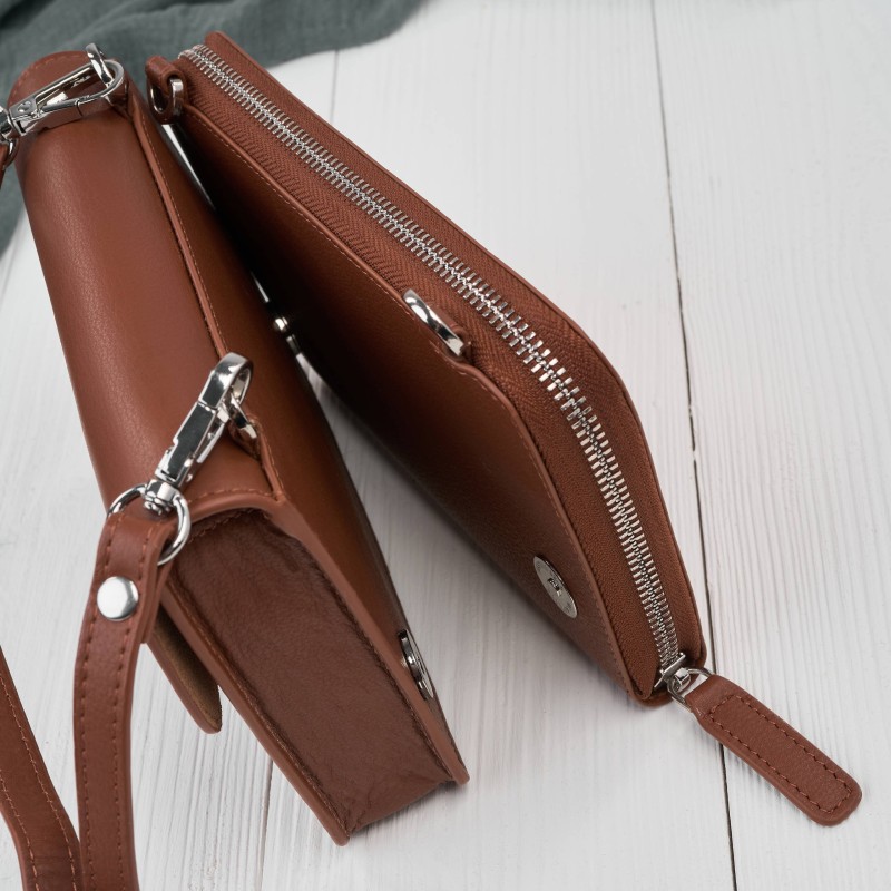 Główna część to elegancka, mała torebka damska zapinana na magnetyczny klips -idealna na co dzień. Drugi moduł to smukła kopertówka na zamek, pełniąca rolę praktycznego organizera. Dzięki magnetycznym klipsom możesz w kilka sekund połączyć oba elementy w jedną całość albo korzystać z nich niezależnie.