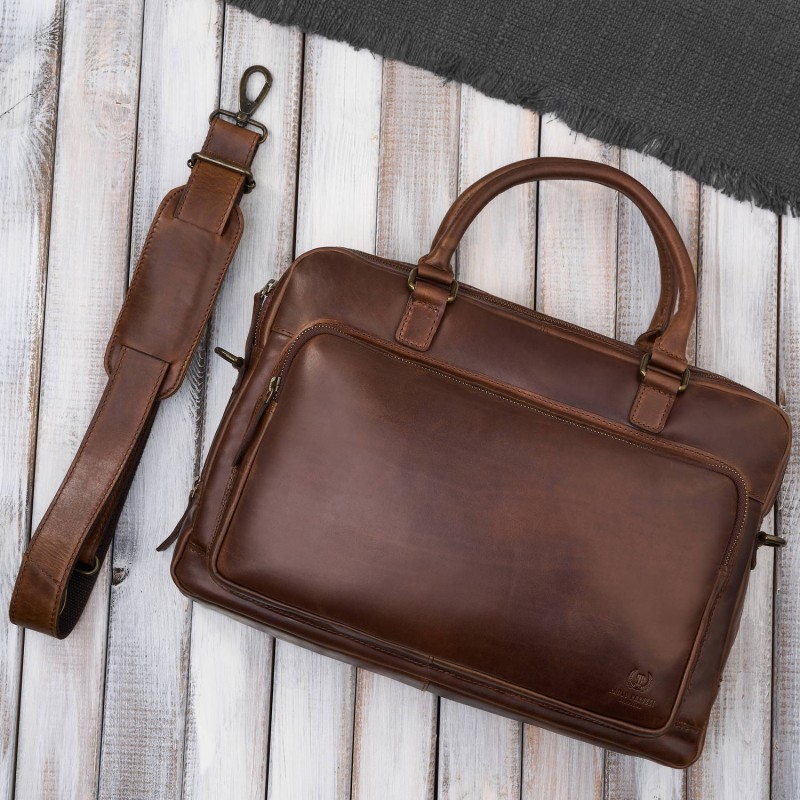 Męska torba skórzana na laptopa do pracy na co dzień brązowa Paolo Peruzzi