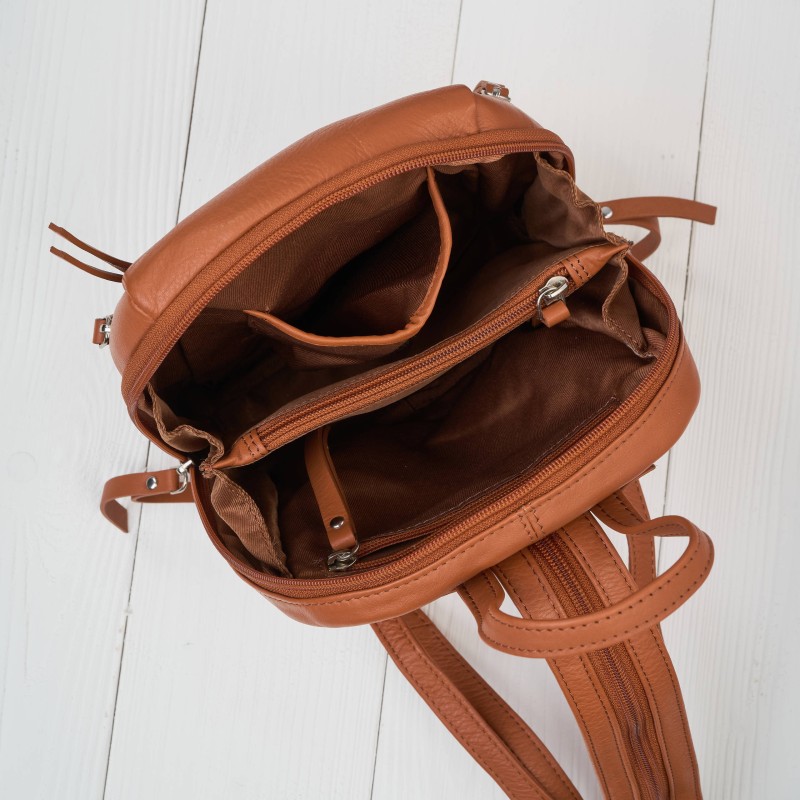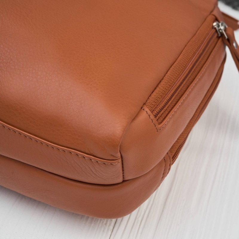- Funkcjonalne wnętrze – przegroda na telefon, środkowa przegroda zapinana na suwak oraz boczna kieszeń na suwak
