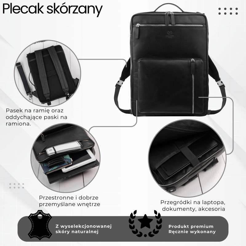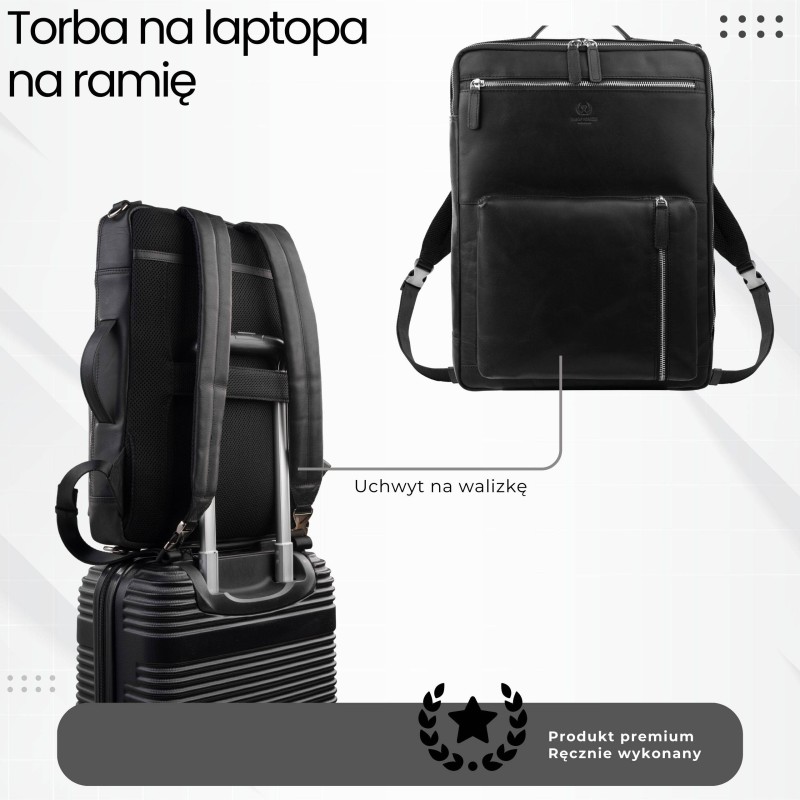 To idealny wybór, jeśli szukasz rozwiązania „2 w 1” – eleganckiego dodatku oraz praktycznego plecaka na laptopa, który sprawdzi się w pracy, w podróży i na spotkaniach biznesowych. Naturalna skóra nadaje mu prestiżowego charakteru, a przemyślany układ wnętrza gwarantuje porządek i bezpieczeństwo Twojego sprzętu.