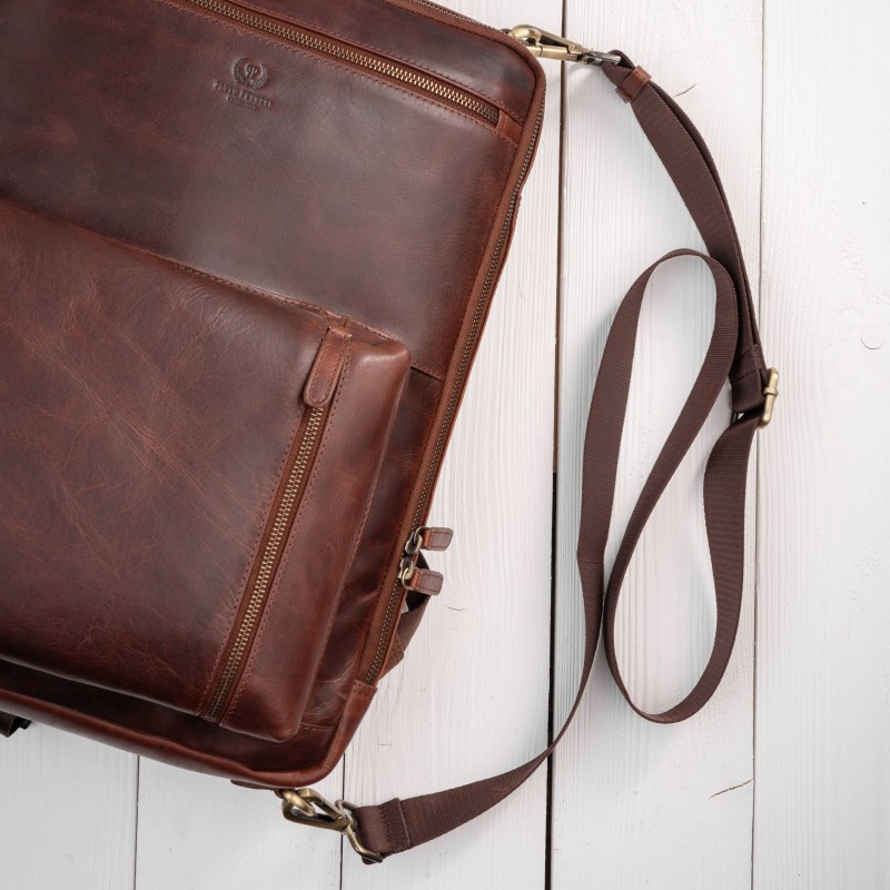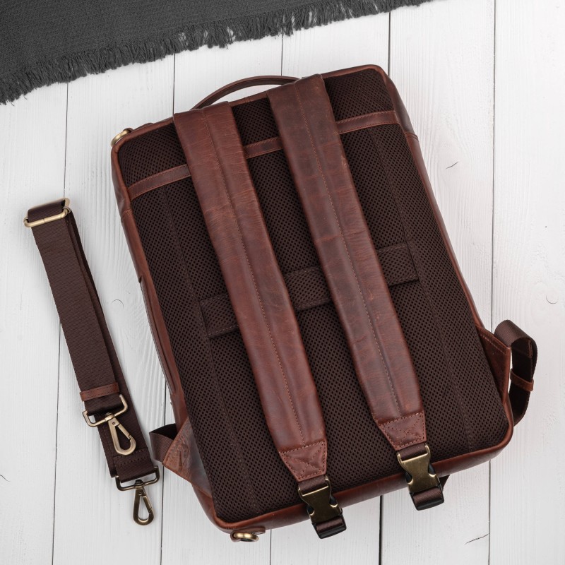 Dodatkowym wyróżnikiem modelu AY-31-CG jest odpinany, regulowany pasek na ramię wykonany z wytrzymałego nylonu. Dzięki niemu plecak męski skórzany w kilka sekund zmienia się w elegancką torbę na ramię, idealną na spotkania biznesowe, podróże służbowe czy szybkie przemieszczanie się po mieście. To praktyczne rozwiązanie pozwala dopasować sposób noszenia do sytuacji i stylu dnia, bez rezygnacji z wygody i profesjonalnego wyglądu.