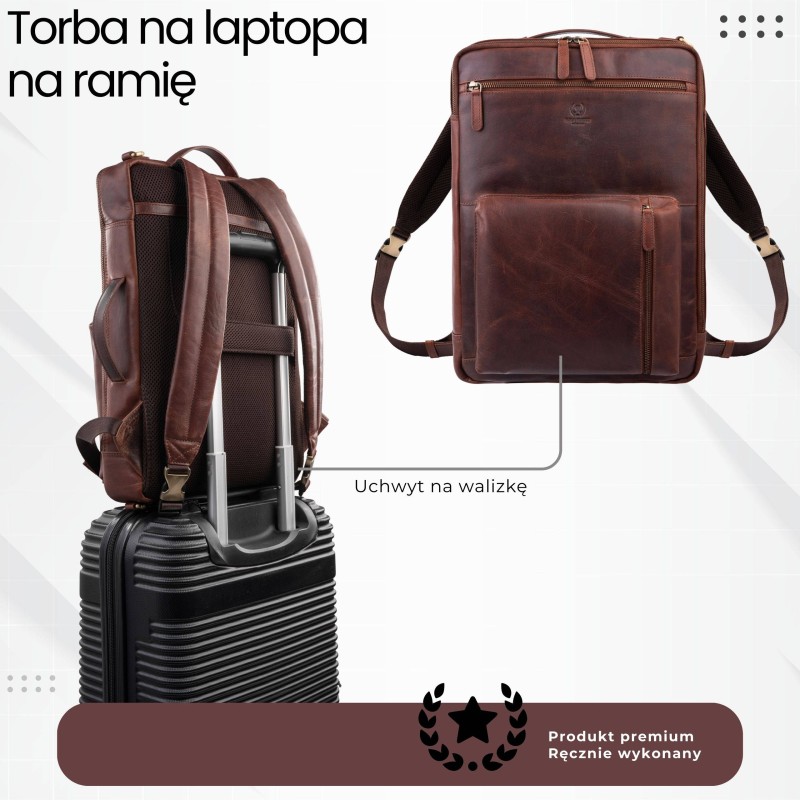 To idealny wybór, jeśli szukasz rozwiązania „2 w 1” – eleganckiego dodatku oraz praktycznego plecaka na laptopa, który sprawdzi się w pracy, w podróży i na spotkaniach biznesowych. Naturalna skóra nadaje mu prestiżowego charakteru, a przemyślany układ wnętrza gwarantuje porządek i bezpieczeństwo Twojego sprzętu.