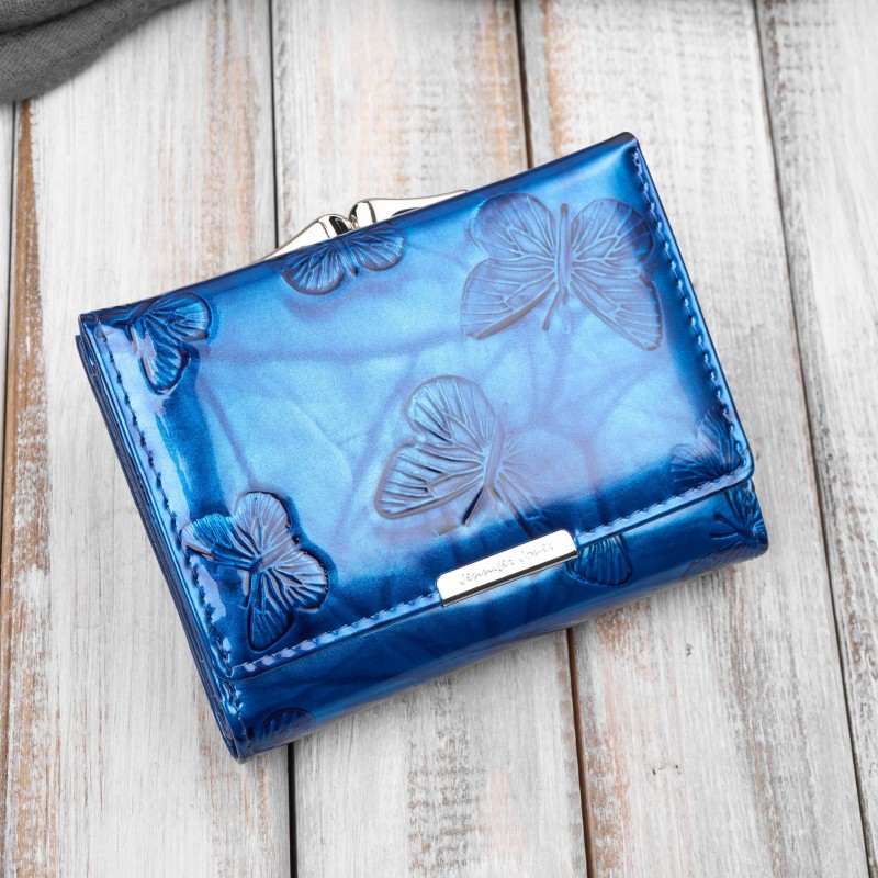 - Niebieski kolor i srebrne okucia – połączenie klasy i delikatnego błysku.