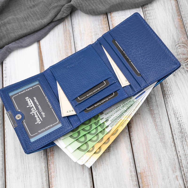 - Funkcjonalne wnętrze – 10 przegródek na karty, 3 schowki, kieszeń na bilon oraz dwie przegrody na banknoty.