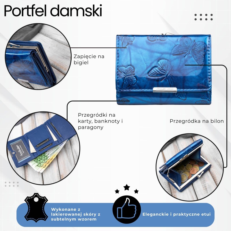 - Tłoczenie w motyle – unikalny wzór, który przyciąga spojrzenia i podkreśla kobiecy styl.